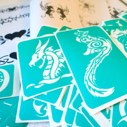 Один из первых зарекомендовавший себя профессиональный набор трафаретов для аэротату и блеск тату на жесткой самоклеящейся виниловой пленке многоразового использования.